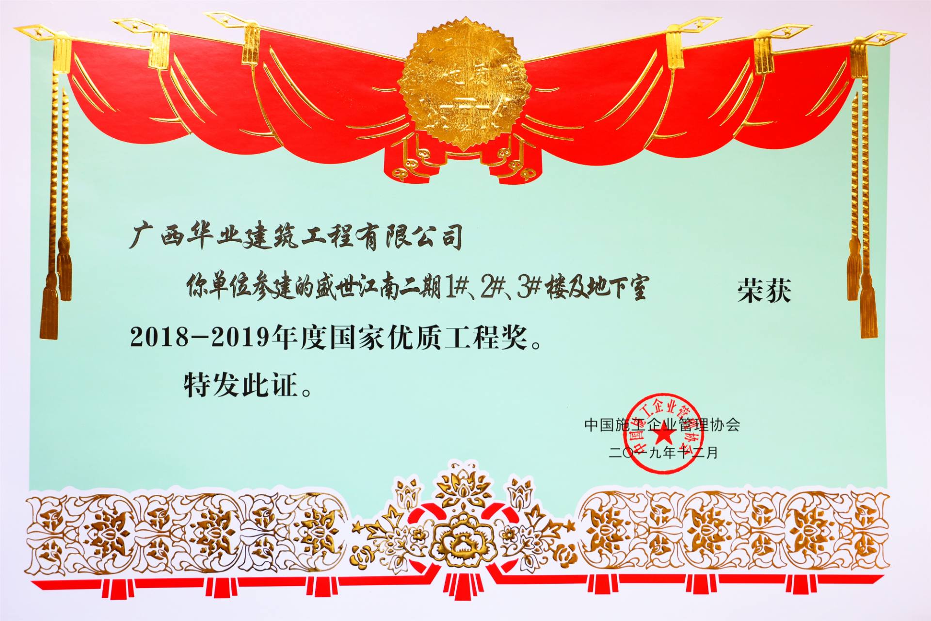 項(xiàng)目榮譽(yù):2019年全區(qū)建筑施工安全標(biāo)準(zhǔn)化觀摩項(xiàng)目 -